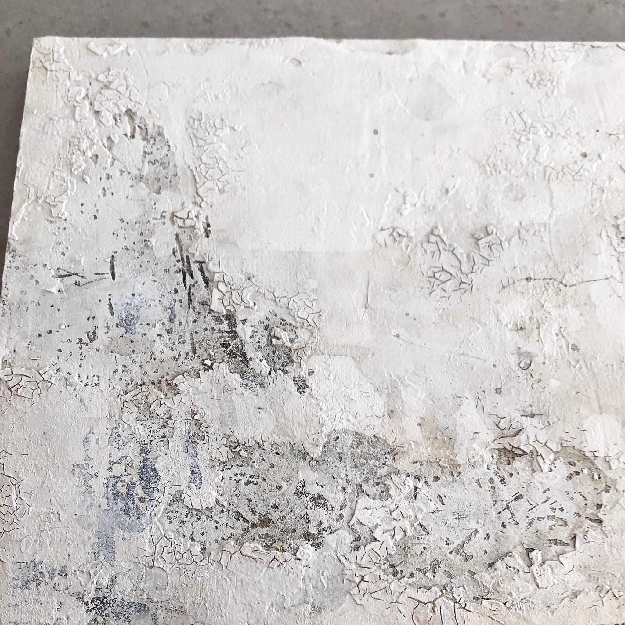 モルタルがもたらす粒子感や武骨な造形美、石膏による乾いたテクスチャは、退廃的ながらも潔く、詩的。
